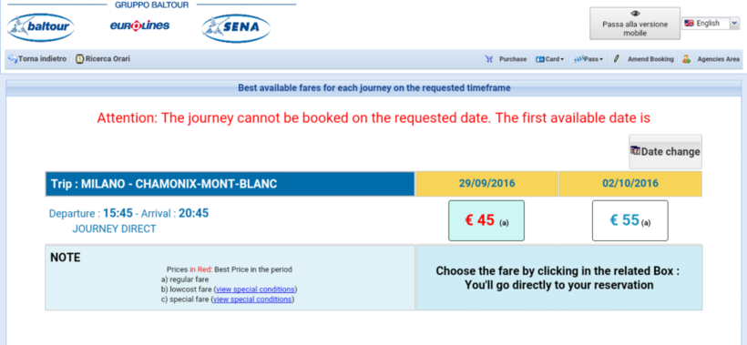 Билеты на поезд можно купить в кассах, в терминалах и на сайте Trenitalia, подробнее об оплате проезда вы можете прочитать здесь. Если оплатить проезд на пригородном поезде можно перед посадкой, то забронировать место в автобусе до Шамони лучше заранее.