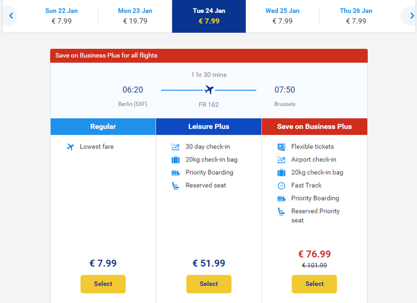 У «Ryanair» очень дешёвые билеты – от 8 евро, но если хотите дополнительных опций, то стоимость возрастает до 50 или даже 80 евро. Вот такая математика.
