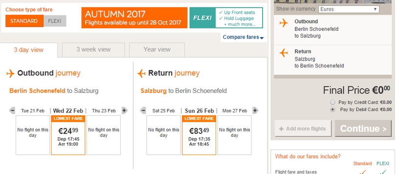 Самолеты от EasyJet отправляются в Зальцбург по средам, пятницам и воскресеньям. Расписание смотрите на сайте EasyJet. Отправка из аэропорта Шёнефельд.