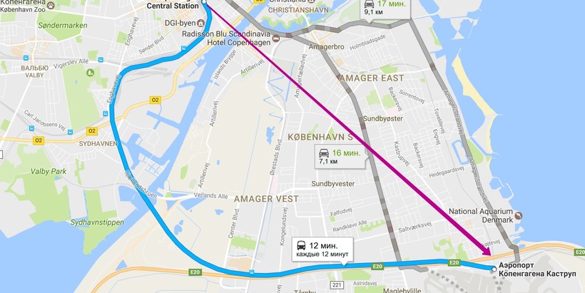 В Копенгагене аэропорт находится недалеко от центра - 9 километров.