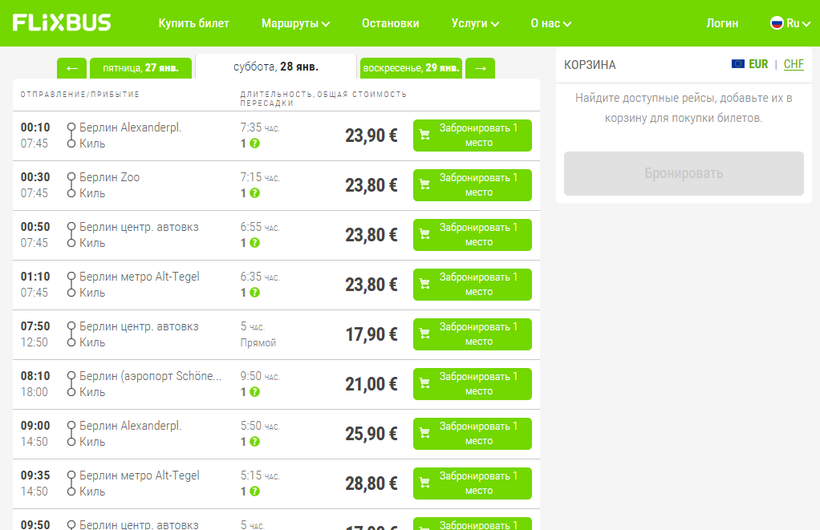 Вот так выглядит сайт «Flixbus» на русском языке.