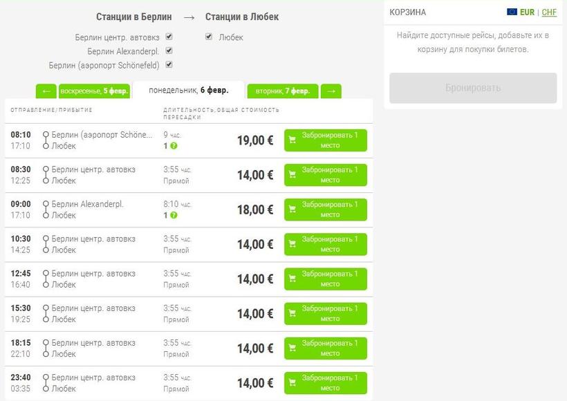Компания Flixbus совершает по несколько прямых рейсов в день между Берлином и Любеком. Я постаралась систематизировать расписание.