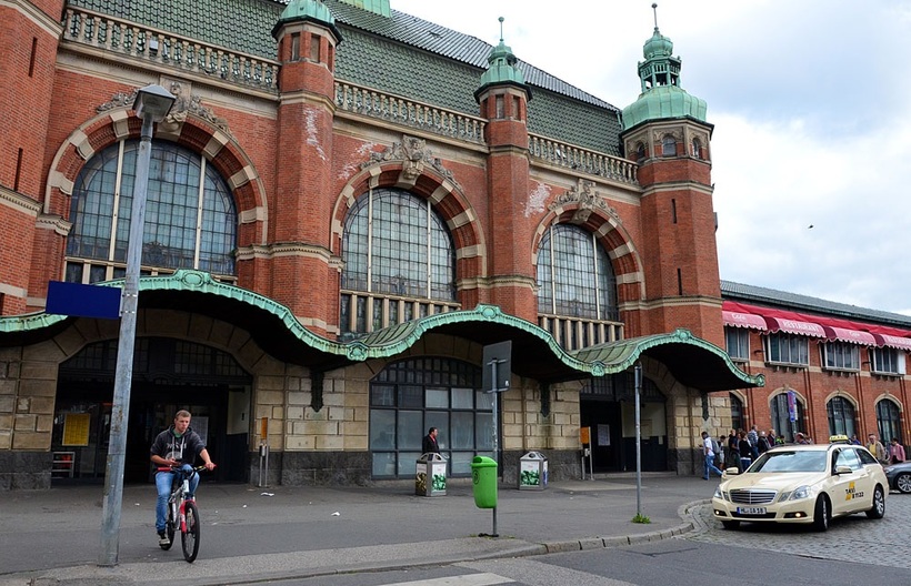 В Любеке только один железнодорожный вокзал. Вот его расположение на карте города.А это вход в здание вокзала.