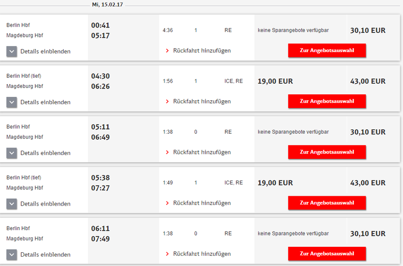 Ниже приведена информация о том, сколько часов вам потребуется, чтобы добраться от Берлина до Магдебурга, а также приведена примерная стоимость проезда (средняя цена билета) на том или ином виде транспорта.