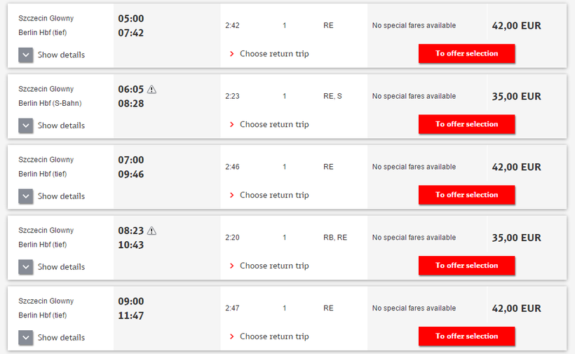 Билеты продаются на вокзале Щецина и на сайте Deutsche Bahn.
