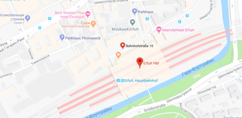 А прибывают поезда в Эрфурт на ж/д вокзал на Bahnhofstraße 10, что всего в 1 км от центра города.