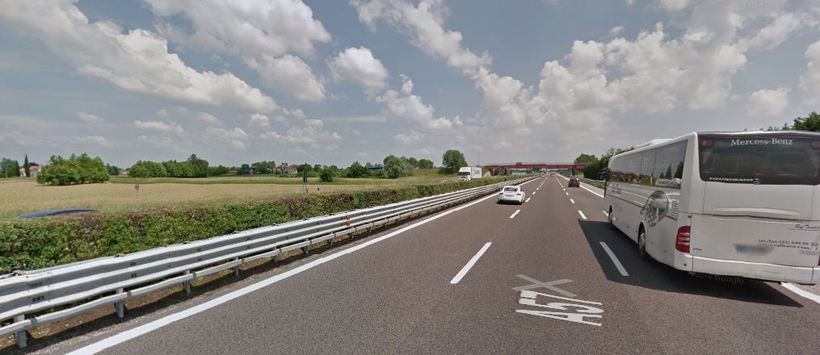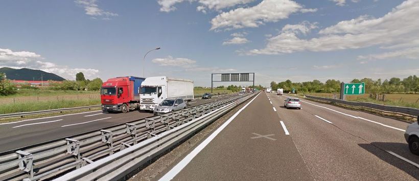 Выезжать из Брешии нужно в южном направлении. Незадолго перед тем, как будет выезд на платную дорогу, выездная дорога имеет следующий вид: