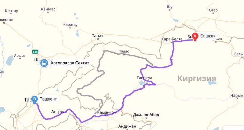 Бишкек — Ташкент — маршрут на карте