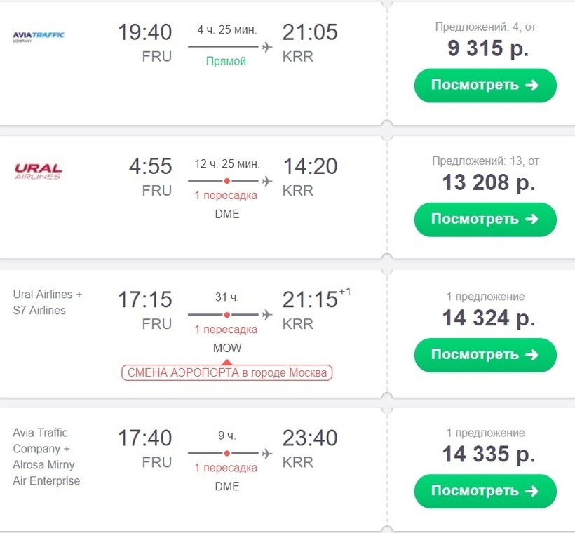 Билеты на самолет до Краснодара от 9910 сомов (это 9300 рублей).