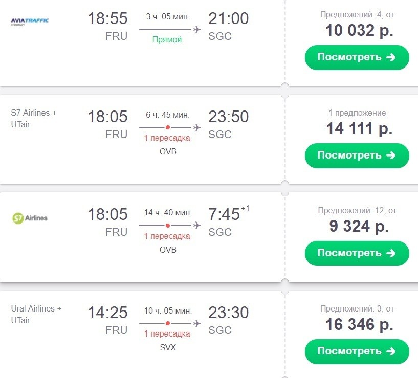 Билеты до Сургута от 9760 сомов (от 9300 рублей).