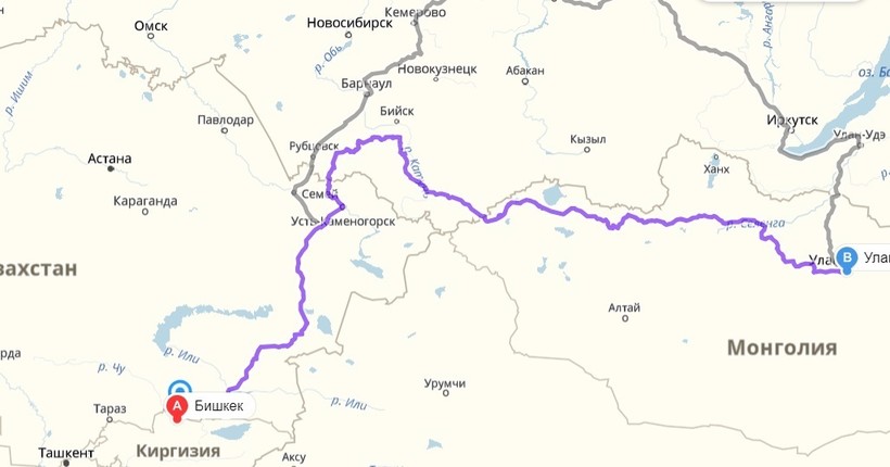 Хочу расстроить любителей долгих разговоров под стук колес — по железной дороге в столицу Монголии из Бишкека добраться не получится. Такая же история с автобусом. Так что попасть из киргизской столицы в монгольскую можно только на самолете. Про путешествие на машине я высказалась ранее — это долго и по деньгам выйдет накладно.