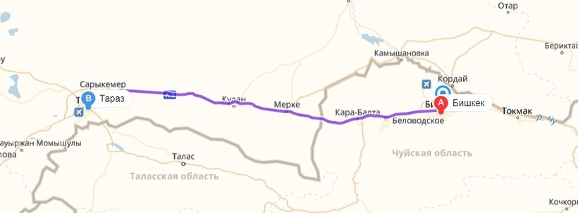 Не удалось проложить автомобильный маршрут из Бишкека до Чолпона-Аты - они находятся на разных материках. Для путешествий между ними рекомендуем воспользоваться самолетом.