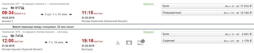 Проездные документы до Белгорода от 9900 рублей (от 10350 сомов).