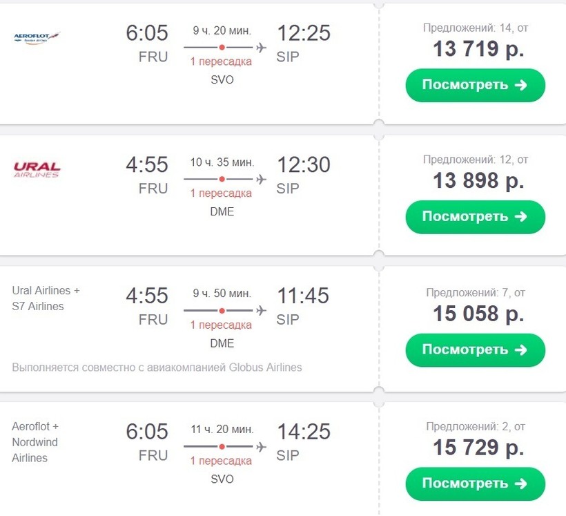 Билеты от 13700 рублей (от 14 500 сом). Выгоднее всего летать с компанией Aeroflot.