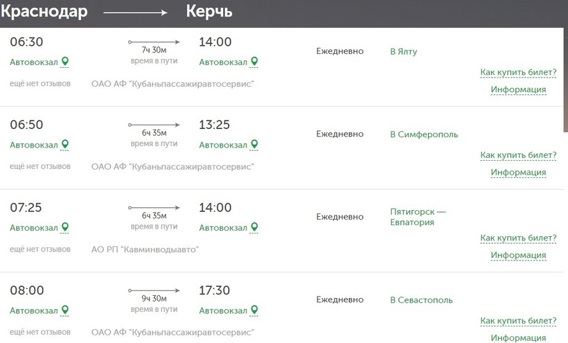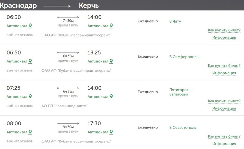 Дорога до Краснодара займет без малого четверо суток. Автовокзал с ж/д станцией находятся на одной площади, так что это небольшой, но плюс. С данной автостанции вы можете доехать во многие населенные пункты Крыма. Например, в Керчь.
