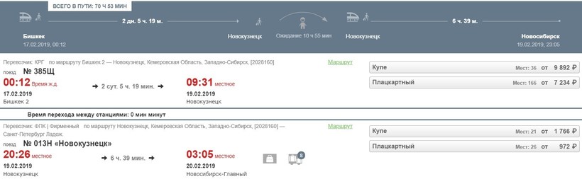 Прямые поезда по данному маршруту не курсируют, но не нужно исключать этот вариант, ведь можно доехать с пересадкой. Ее сделайте в Новокузнецке,
