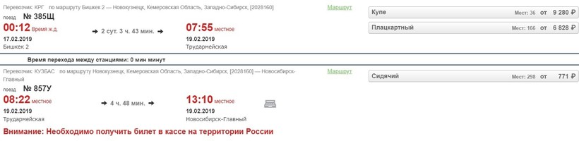 Билеты до Новосибирска 4000 сомов (примерно 3760 рублей). Конечно же, это намного дешевле, чем на поезде или же самолете.