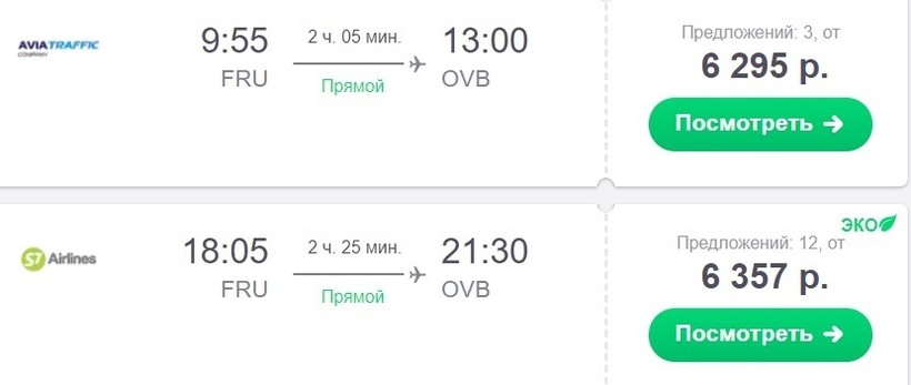 Билеты до Новосибирска от 7600 рублей (от 8050 сомов).