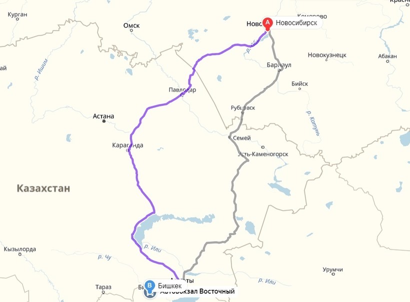 Если вы любитель преодолевать длинные дистанции на машине, то этот вариант для вас. От Бишкека до Новосибирска 2200 километров по трассе. Ездила один раз по этому маршруту и на дорогу ушло трое суток (со всеми остановками и ночевками). Что касается длительного отдыха, то ночевала в Балхаше и Караганде. Собственно Балхаш находится на одноименном озере. Номер в неплохой гостинице тут можно снять за десять тысяч тенге (это примерно одна тысяча восемьсот рублей). В Караганде цены примерно на двадцать процентов выше. Что касается бензина, то у меня ушло примерно 230 литров. Заправлялась я в основном в Казахстане, потому что большая часть трасс идет через это государство. Сейчас стоимость АИ-95 здесь примерно 170 тенге, если перевести в рубли, то получается тридцать. Цены в различных городах могут значительно различаться.