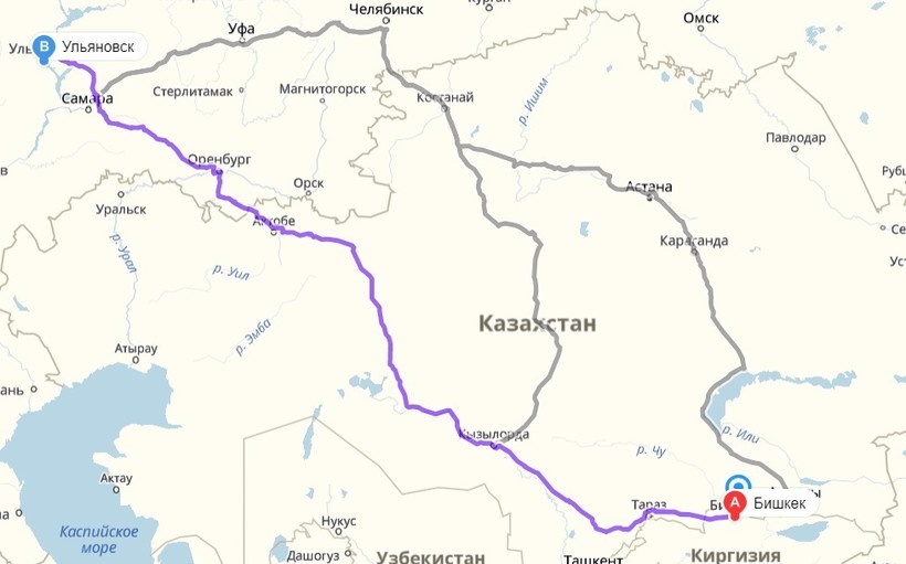 Бишкек — Ульяновск — маршрут на карте