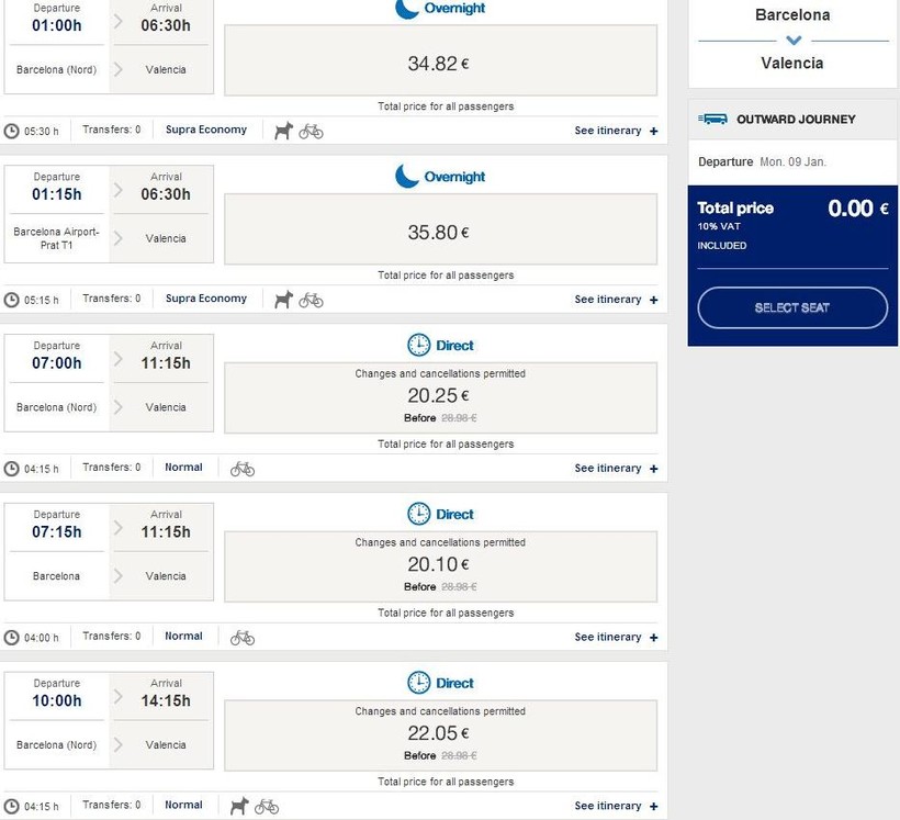 И снова, как и в случае с поездами, придется делать пересадку в Барселоне.