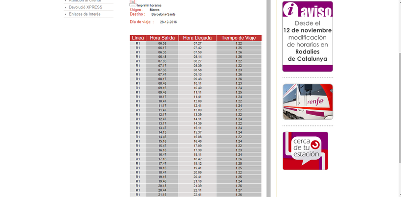 Доехать из Бланеса в Реус на поезде напрямую нельзя, можно только с пересадкой в Барселоне. С вокзала Бланеса в Барселону ходит электричка R1. Электрички ходят в среднем с интервалом в полчаса с 6.05 до 21.55, вот здесь можно посмотреть подробное расписание. Ехать до Барселоны примерно 1 час 20 минут, электрички приходят на вокзал «Барселона Сантс». Приехав вы можете воспользоваться ситуацией и погулять по городу, а можете сразу пересесть на поезд до Реуса. С вокзала «Барселона Сантс» в Реус поезда отправляются часто, как минимум каждый час. Поезд идёт от Барселоны до Реуса 1 час 20 минут.