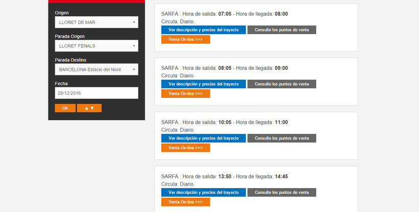 А вот так выглядит расписание автобусов из Ллорет Де Мар до Барселоны.