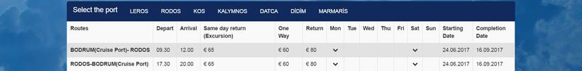 Итак, мы прибыли в порт Бодрума, который располагается вот тут:Отсюда всего лишь два раза в неделю отправляется паром до Родоса. Вот расписание с сайта компании: