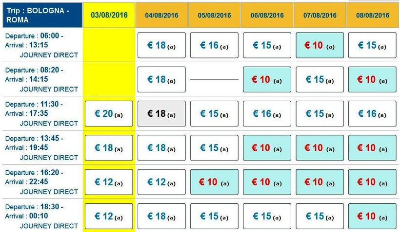 Ниже приведена информация о том, сколько часов вам потребуется, чтобы добраться от Болоньи до Рима, а также приведена примерная стоимость проезда (средняя цена билета) на том или ином виде транспорта.