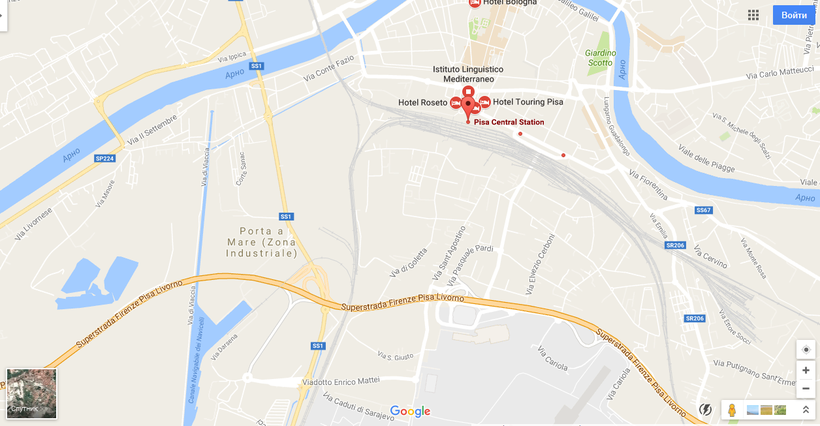 В Пизе в самом центре города расположен железнодорожный вокзал. Добраться сюда от Пизанской башни можно за 30-40 минут, если идти прогулочным шагом.