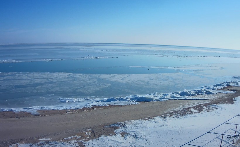 Площадь моря помню еще со школы — 39000 кв. км. Температура воды примечательна тем, что зимой близка к точке замерзания, а то и вовсе минусовой. Хотя возле Керченского пролива даже в зимнюю пору сохраняется положительная температура воды. Связано это с маленькой глубиной. Летом температура колеблется стабильно от 22 до 24 градусов по Цельсию.