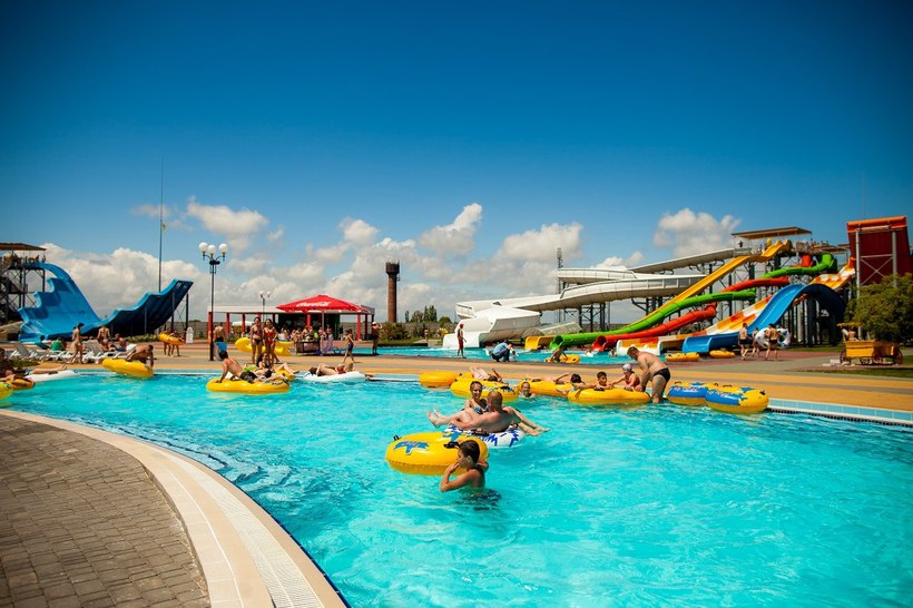 Огромное количество самых экстремальных аттракционов и бассейн с лазурной водой размером более 1700 кв. км настроение поднимут сразу. Бассейн имеет круглую форму с плавательными дорожками через весь аквапарк.