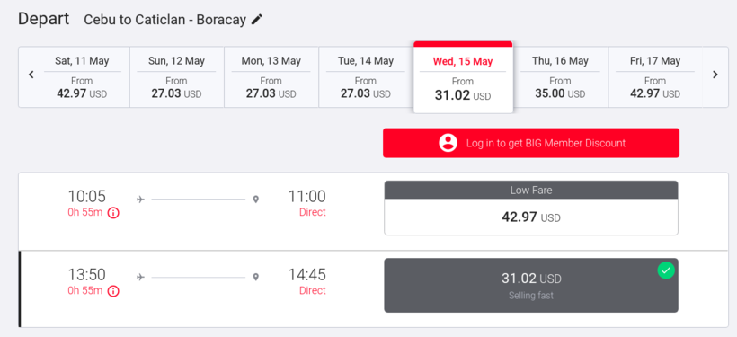 Цена билета на рейс Air Asia составляет как минимум 1420 песо (27 долларов), для полета с Cebu Pacific потребуется 2011 песо (чуть больше 38 долларов).