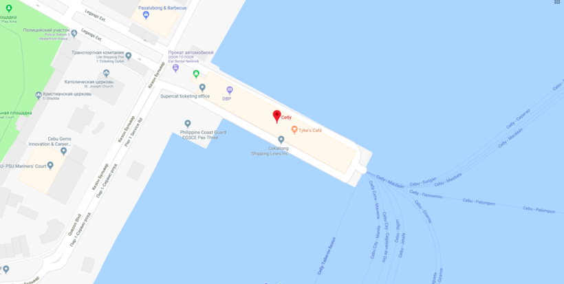В этом случае следует отправиться к причалу Себу. Он расположен по адресу Quezon Boulevard, Port Area, Pier2, Cebu City: