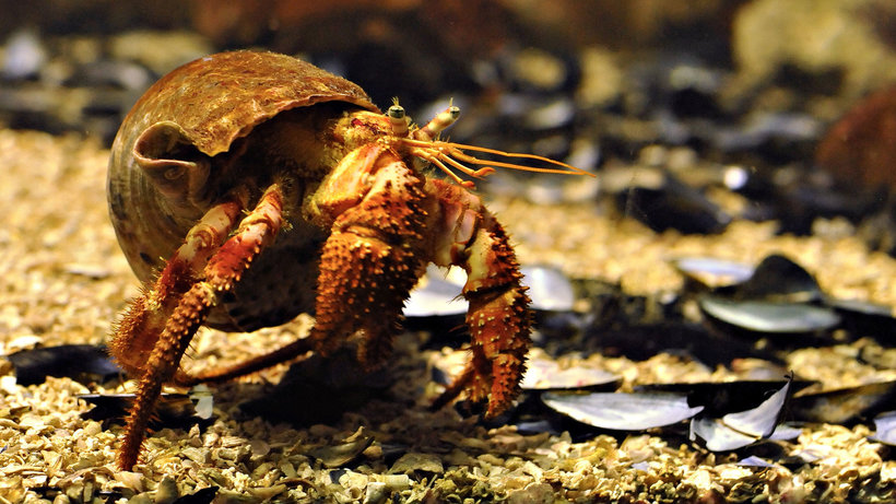 - У рака отшельника нет панциря, он просто забирается в свободные ракушки, которые находит на суше.