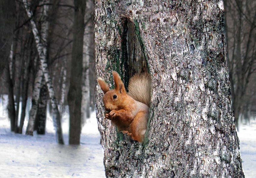 Путь от дома до моей работы проходит через лес. Каждое утро по дороге я встречаю проворных белок. Они так быстро перескакивают с одного дерева на другое, что не успеваешь за ними даже проследить. Мне всегда было очень любопытно наблюдать за этими шустрыми созданиями и интересно узнать, где же они живут. Вооружившись фотоаппаратом, отправляюсь на поиск беличьих убежищ.