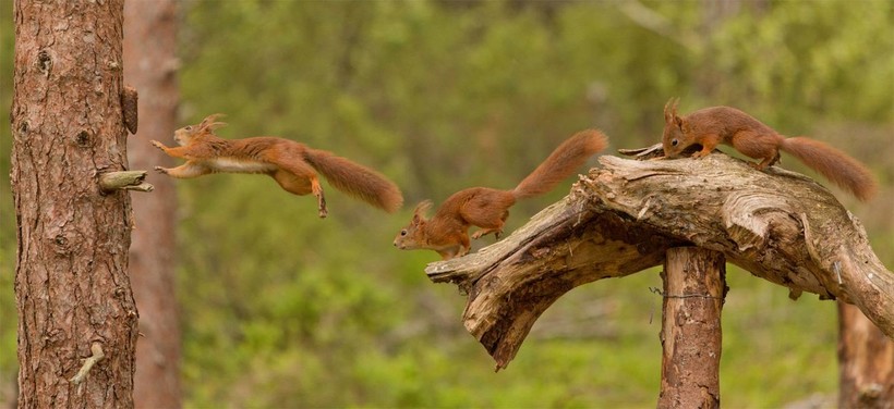 Белки настолько быстрые, что и вправду кажется, что они вездесущие. Вот только сидела на нижней ветке ели, как через секунду – глядь, а она уже на верхушке соседнего дуба. Большую часть времени белки проводят на деревьях, но часто их можно увидеть и бегающими по земле.