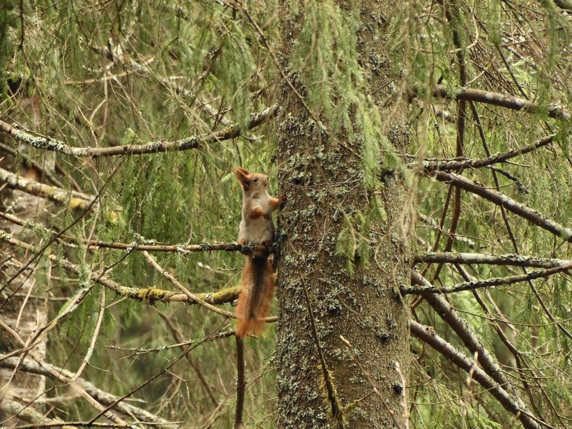 Когда я лежала в больнице, то каждый день через окно наблюдала за белкой, которая так лихо скакала по веткам, что я боялась, хоть бы она не свалилась оттуда. Но падать с деревьев это не про них. Лапы у них очень цепкие и координация такая, что будь здоров.