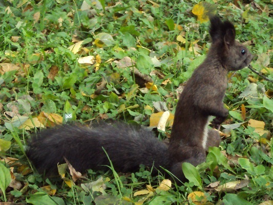 Бывает, что просто идя по городу, вдали от парка или сквера, я вижу прыгающих белок, которых уже не пугает грохот трамваем и гул машин. Что характерно, цвет таких городских белок грязно-серый. А вот в парке можно увидеть рыжих проказниц. Но их внешний вид тоже оставляет желать лучшего – шерсть тусклая и вся клочками.