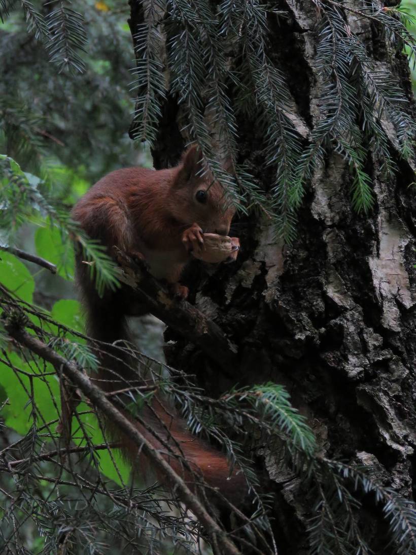 Город белок. Эти прекрасные создания проживают не только в своих любимых хвойных лесах, белки успешно стали обживаться и в городских парках. Им нравится кушать с руки, конечно надо быть осторожным, но я не помню случаев, чтобы белка поранила кормящего. Белочки любят орешки и шишки кедровые целиком, они успешно с ними справляются. Уделяйте больше внимания городским белкам, без Вашей помощи им в городе прожить трудно.