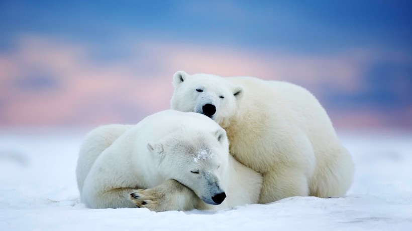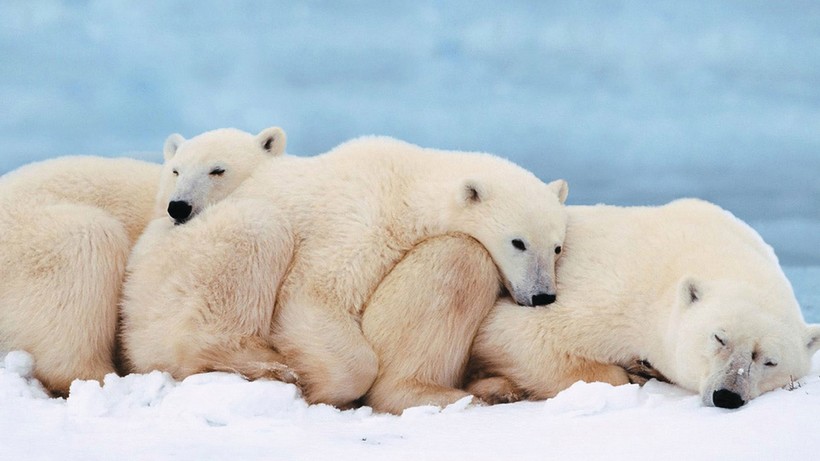 С приходом глобального потепления климат меняется, ледники отходят, и белым медведям приходится проходить тысячи километров, в поисках мест обитания тюленей. А в период лета, когда становится тепло, медведи могут голодать до четырех месяцев.. В это время они мирно лежат на берегу и греются на солнышке.