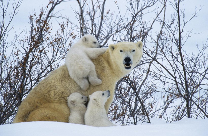 Белые медведи не живут стаями, они любят одиночество. Исключение — это только самки с детенышами. Максимум медвежата могут прожить с матерью полтора года, а потом они должны уйти в «свободное плаванье».