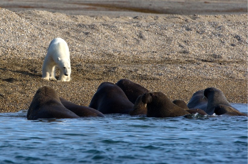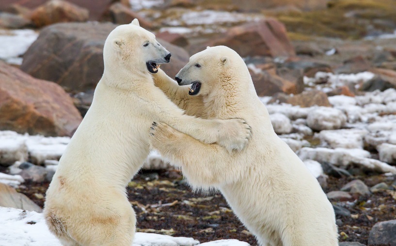 Это, наверное, единственное время, когда белые медведи могу собираться группами. На Северном полюсе очень суровый климат, не позволяющий охотиться вместе. К тому же медведи очень большие, и их легко заметить. Поэтому живут и охотятся они в одиночку. Но если возникнет ситуация, когда нужно поделиться едой, то белый медведь никогда не откажет и не прогонит другого медведя.
