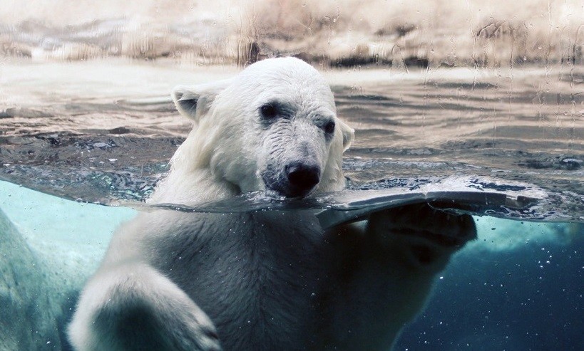 Интересно то, что белые медведи не уходят далеко от воды вглубь острова или материка, а располагаются вдоль берегов, на припайных льдах. Также они любят «кататься» на дрейфующих льдинах в поисках добычи. Неслучайно в большинстве стран белого медведя считают морским млекопитающим, а на латинском языке его название — Ursus maritimus — медведь морской. Они настоящие чемпионы по плаванию в ледяной воде: плывущего белого медведя можно встретить за 150 км от берега! Исключение составляют беременные медведицы: они рожают своих малышей в берлогах.