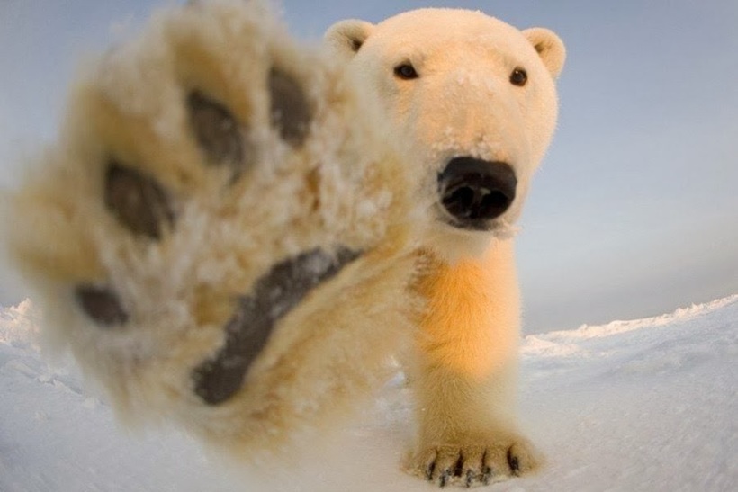 Холода белые медведи переносят нормально, ведь у них непромокаемый мех и достаточно густой подшерсток. Также у них десятисантиметровый подкожный жир.