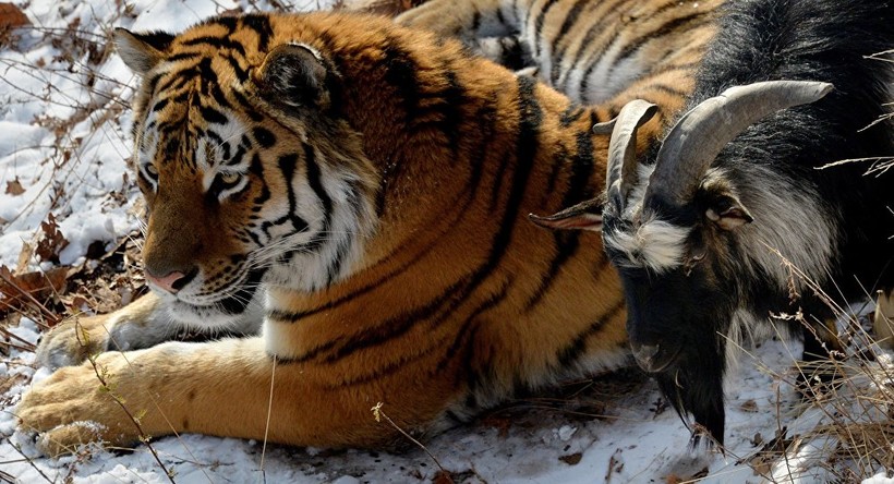 - тигр Амур из Приморского сафари-парка, который подружился с козлом Тимуром;