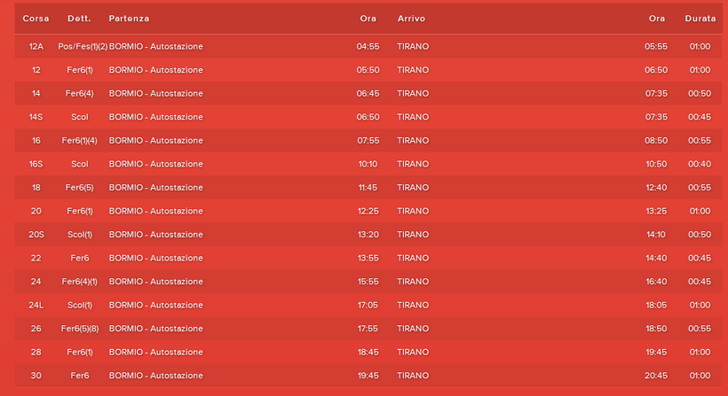 Автобус из Бормио в Тирано обойдется в 3 евро. Путешествие из Тирано до Венеции будет стоить еще 30-32 евро.