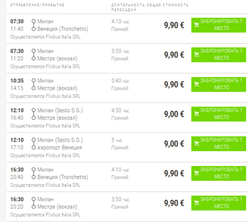 Как видите, маршрут довольно сложный, поэтому, чтобы избежать досадных накладок, есть смысл забронировать билеты заранее. Сделать это можно на официальных сайтах компаний Busperego, FlixBus, Trenitalia.