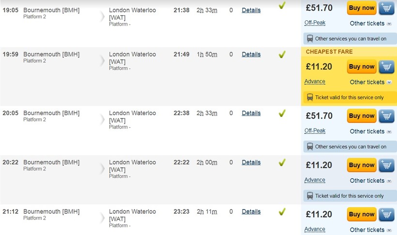 Вы можете найти билеты и за 11 фунтов (13 евро), и за 50 фунтов (55 евро) в один и тот же вагон. Просто заранее они стоят дешевле. Цена сильно колеблется в течение дня, в час пик ездить дороже всего.