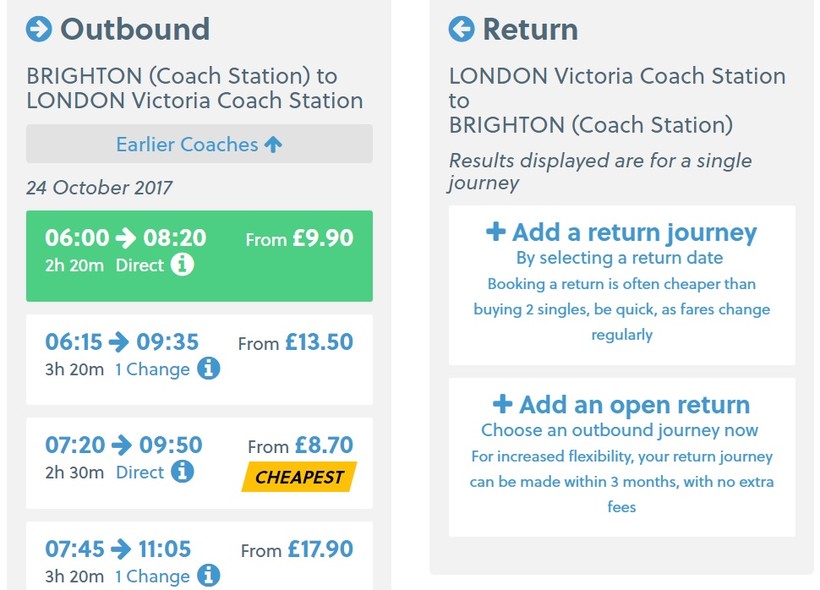 Советую посмотреть билеты на разные даты, в один день минимальная цена может быть 10 фунтов (11 евро), а в другой — 5 фунтов.